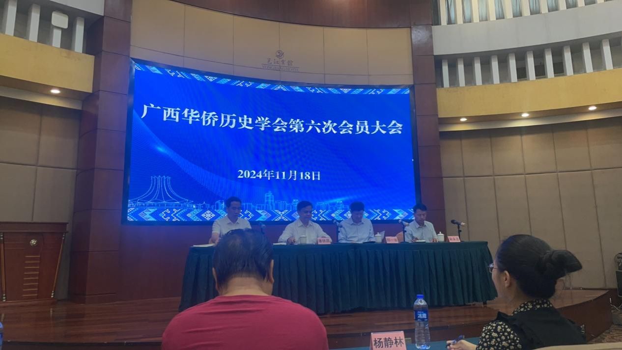 为进一步加强广西华侨历史学会建设,推进侨史研究视野的繁荣发展,2024年11月18日,广西华侨历史学会第六次会员大会在南宁市邕江宾馆顺利召开。广西壮族自治区区侨联副主席潘锦昌出席会议,并作讲话。