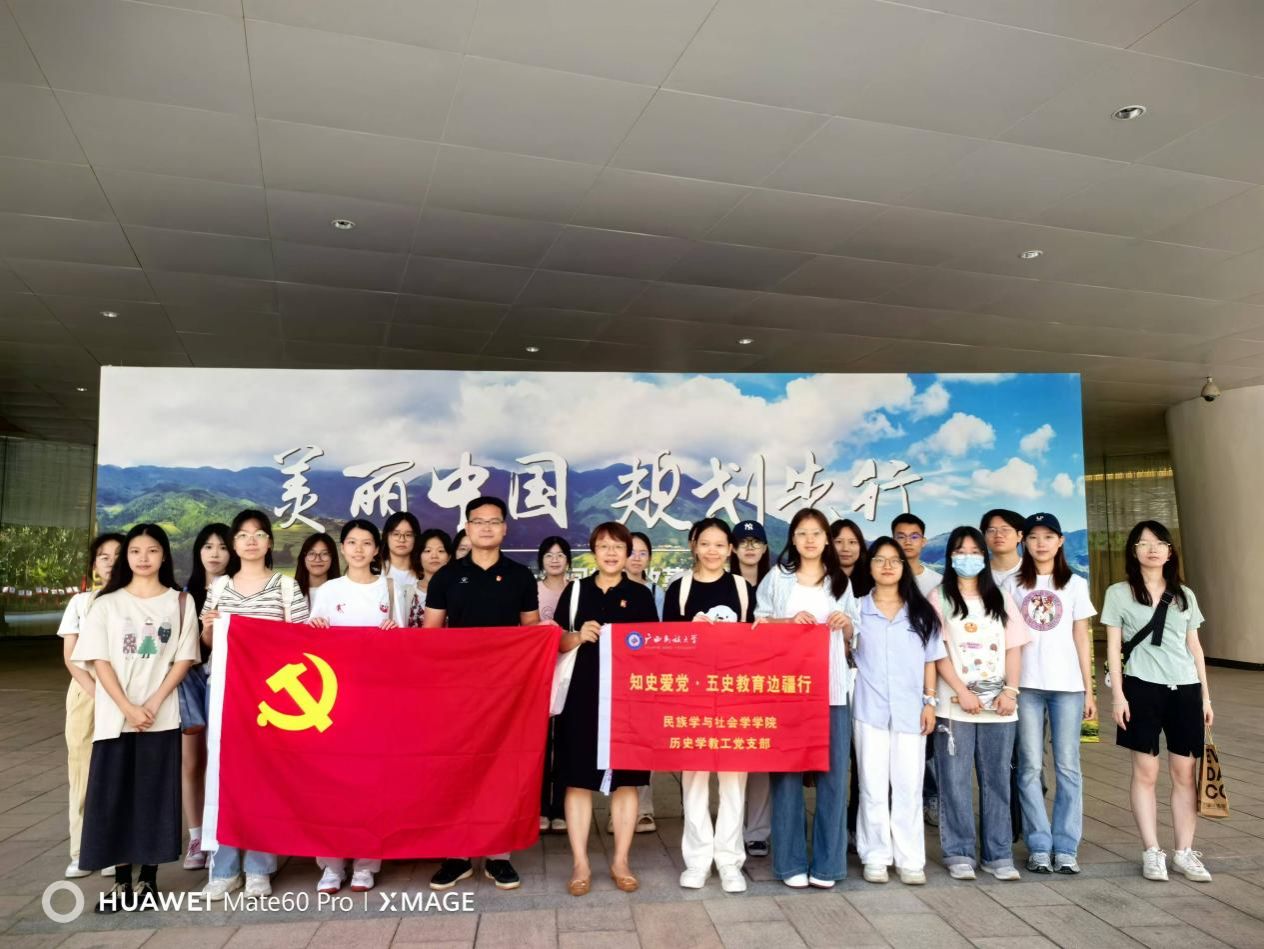 以此为新的起点,为打造“知史爱党·五史教育边疆行”教育服务品牌,2024年11月15日,历史学教工党支部书记滕兰花教授、公司党委组织员李开欢老师带领历史系本科和硕士生团队代表前往南宁城市规划展示馆和广西自然资源档案博物馆开展“八桂红色研学”专题调研活动。