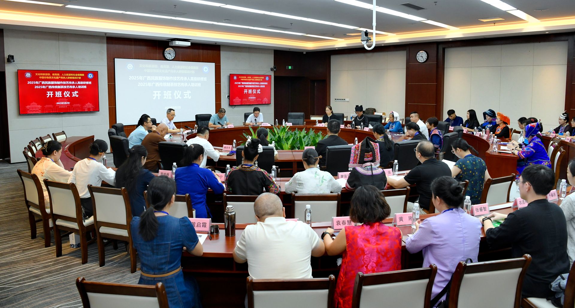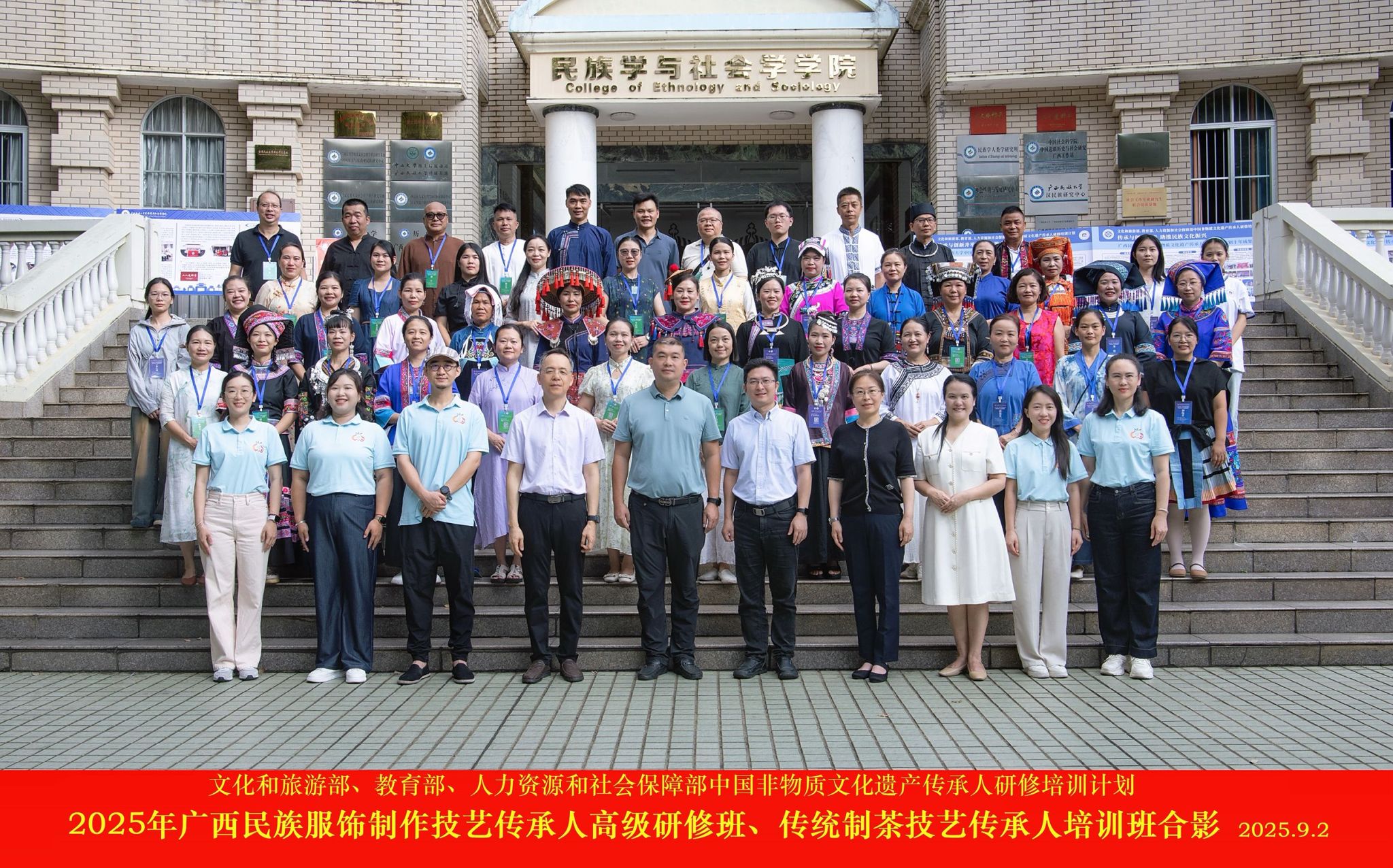 2025年广西民族服饰制作技艺传承人高级研修班和广西传统制茶技艺传承人培训班共有来自广西南宁、柳州、河池、桂林、玉林等地45名学员,培训时长为期一个月。本次培训将采取讲座、交流研讨、实践操作、考察观摩和展演等多种形式开展教学活动,旨在通过系统化培训与实践,提升非遗传承人及相关学员的专业技能与综合素养。课程内容将深化学员对非遗政策法规、知识产权保护机制与民族传统文化内核的认知与理解,同时加强其内在传统技艺实操与本土非遗创新应用方面的能力。通过推动理论与实践的深度融合,进一步增强传承群体的文化自觉与使命意识,积极推进活态传承模式的落实,助力传统文化与现代创意有机结合,从而实现非遗项目的可持续传承与发展,不断提升非遗作品的艺术价值、文化影响与社会认同!