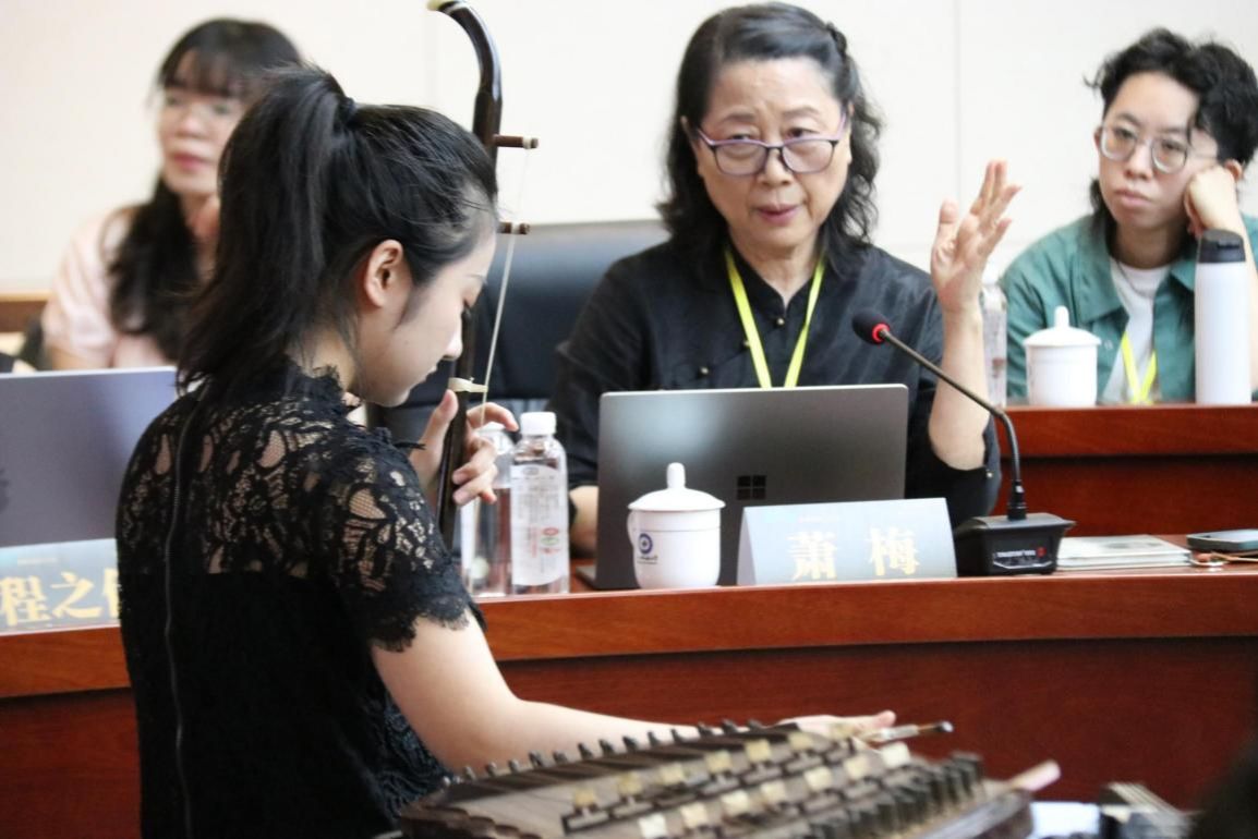 继工作坊第一天关于多模态人类学与展览、多模态人类学与中国节日影像志、多模态人类学与影像民族志、多模态人类学与绘画、多模态人类学与戏剧五个学术单元的讨论之后, 10月12日上午,萧梅、邢媛、程之伊三位学者围绕“多模态路径下的遗产复兴:江南丝竹乐器的演变与声音的社会文化生态”这一主题展开了探讨。萧梅从民族音乐学方面指出,传统江南丝竹的合奏方式呈现出“以乐会友”的社会交往逻辑,和现代音乐的表演体系不一样。她表示,丝竹演奏里乐器间的“让路”与“斗趣”,实际上是一种社会关系的音声实践,呼吁在遗产保护中重视音乐传统与社群美学,而不是只追求曲目创新。邢媛聚焦于乐器物质性,借助百年二胡与琵琶的形制、律制以及丝弦与钢弦的对比,指出乐器变革对音色、技法与听觉习惯的深刻影响。她以清代琵琶的修复与生命史作为例子,提出多感官介入的研究路径,让乐器成为连接历史记忆与当代实践的媒介。程之伊分享了“拾回蚕丝的声音”公益项目的实践路径,借助复原丝弦乐器、重建围坐表演场域等办法,推动学术成果向社会转化,她强调“研究型创作”理念,以展演、工作坊、文创等形式构建知识生态系统,探索传统声音在当代的重生可能性。该单元的讨论紧扣多模态人类学主题,采用了新颖的学术发言和丝竹现场演奏相互依托的形式,为与会者贡献了一份精致的学术大餐,呈现了学术思考与艺术实践的深度融合,彰显了多模态人类学民族志路径为传统音乐复兴开辟的实践路径。