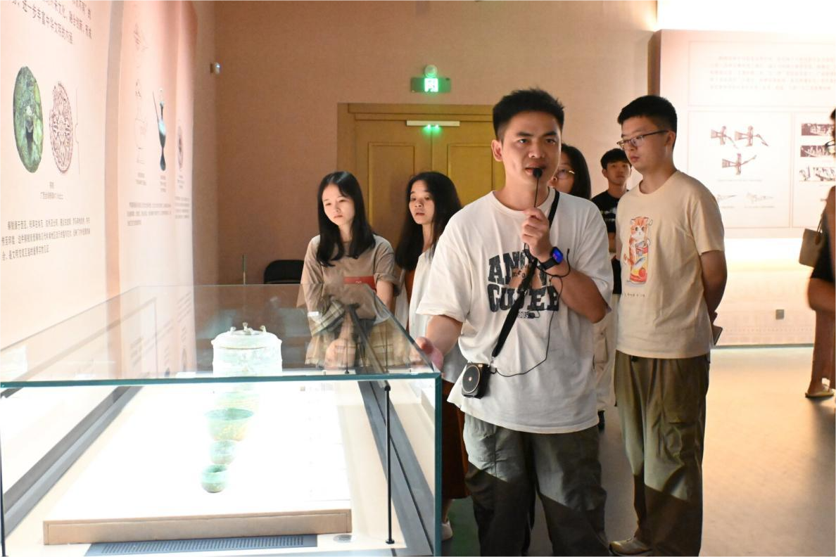 10月17日下午,师生们来到广西壮族自治区博物馆,参观常设展览《广西古代文明陈列》《合浦启航——广西汉代海上丝绸之路》及临时展览《铸于铜 融于心——广西馆藏青铜器中的“三交”印记》,藏品管理和展览部黄海荣副主任作为策展人,为师生详细讲解了馆藏青铜器展陈。
