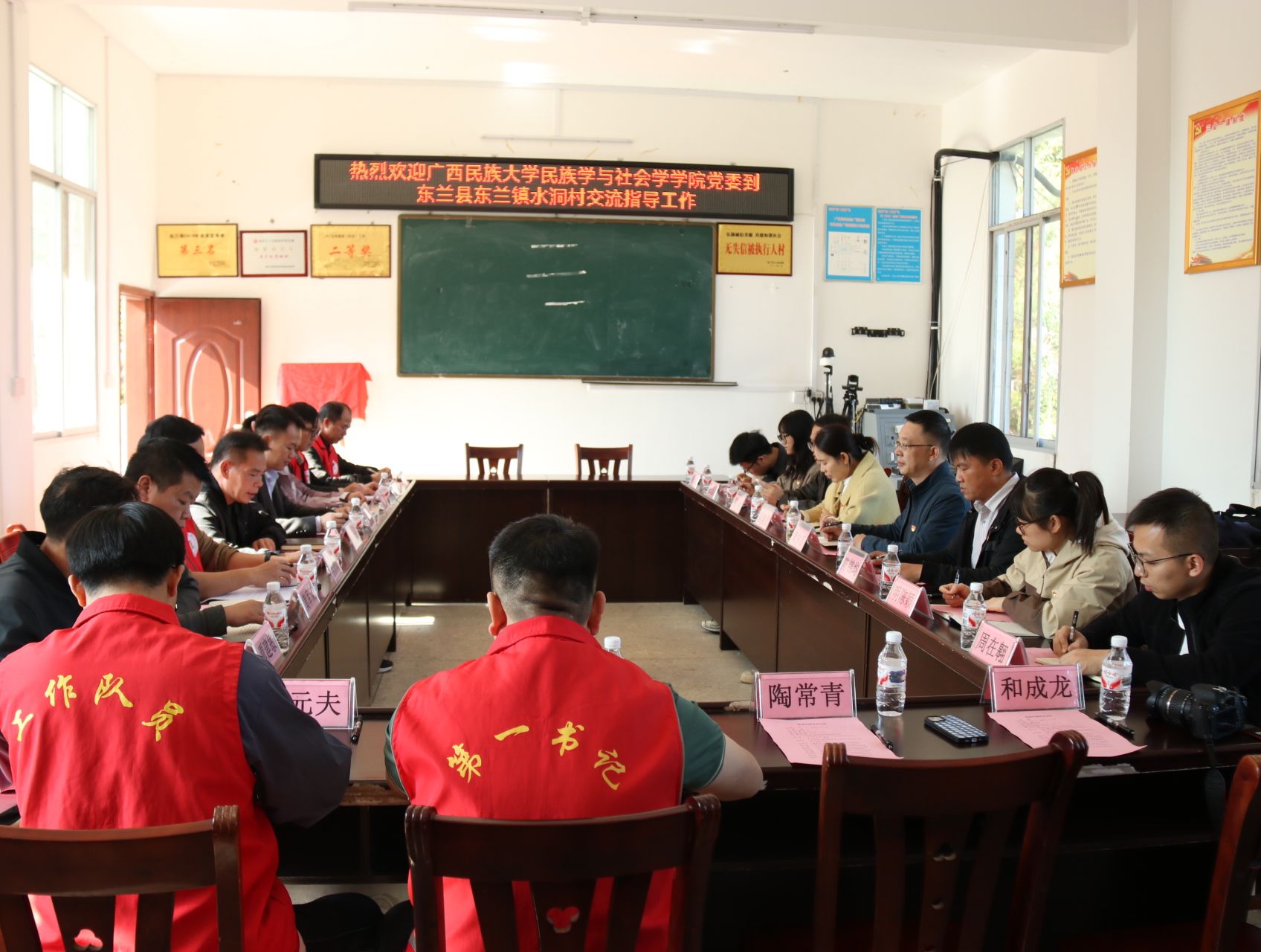 水洞村党支部书记黄甫江介绍村情概况,重点围绕组织建设、党员队伍结构、乡村治理及未来规划做详细汇报;伟德体育民族学研究生第一党支部书记陈锦均分享公司“党建+学术+田野”特色做法,展示党建引领学科发展、人才培养与服务社会的系列成果。