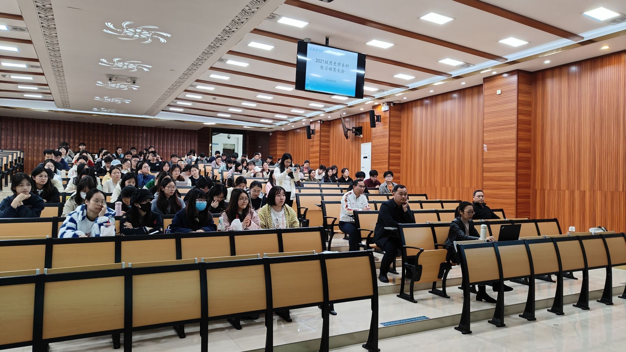 为确保教育实习工作有序开展并取得实效,2024年3月8日下午,公司在学友楼105室召开了2021级历史学本科教育实习动员大会。公司副经理滕兰花,历史系教师富霞,带队教师胡小安、朱华进、龙小峰、梁善明、李方恩、邓平以及2021级历史学专业全体本科生参加。会议由系主任朱华进主持。