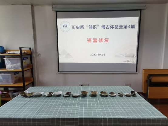 2022年10月24日上午,历史系“器识”博古体验营第4期活动在文科综合楼1702室顺利举行。本次活动主题为“瓷器修复”,2021级历史学专业的40位同学参加,富霞主持。
