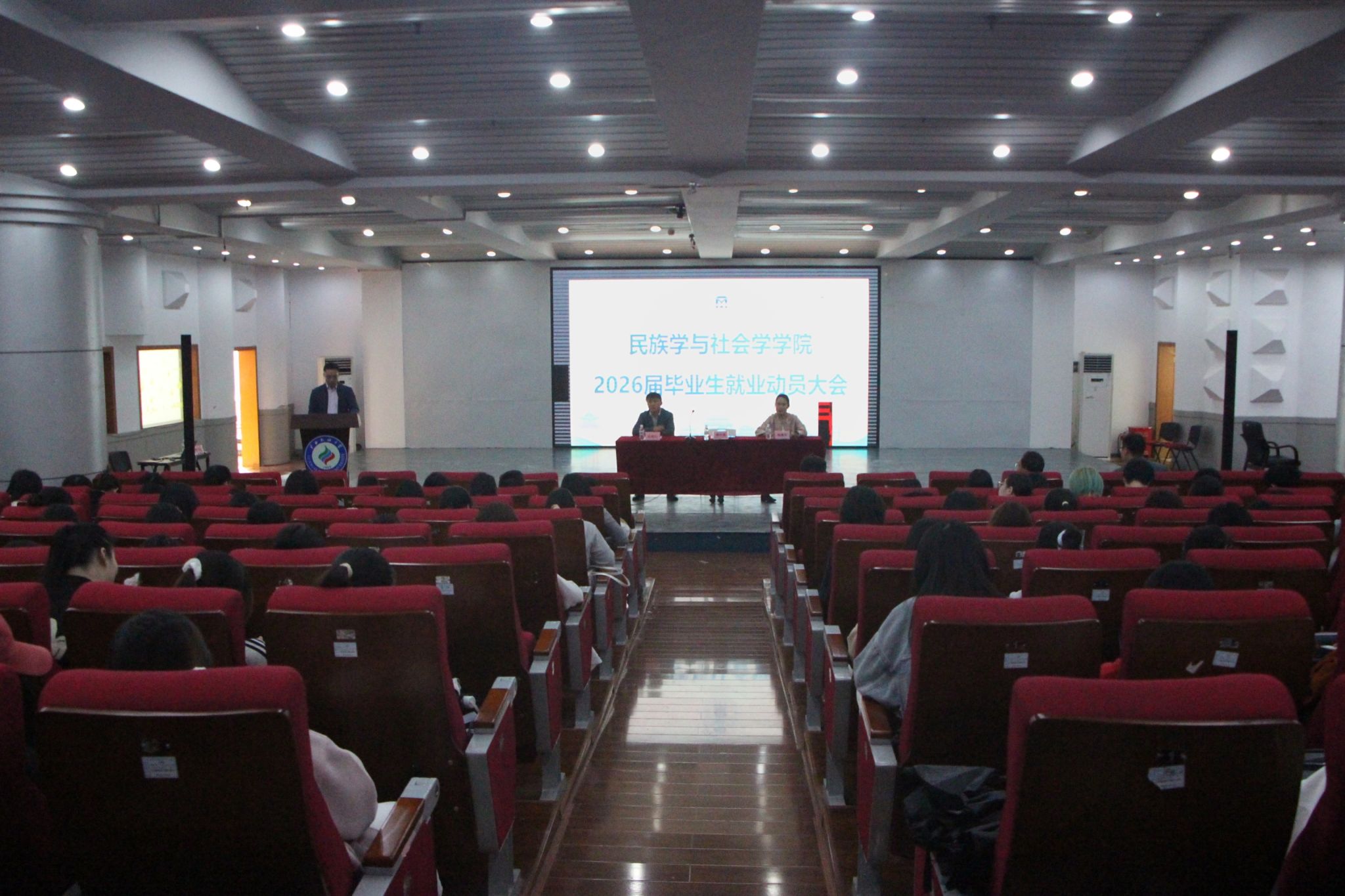 2026届民族学专业本科毕业生蒙兰金作为员工代表发言,她结合自身求职与实习经历,分享了从校园走向职场的心路历程。她表示“求职过程中应主动探索适合自身的职业方向,不怕试错,持续尝试,用好公司招聘平台,尽早实现就业。”其真诚的发言引发了在场同学的共鸣。
