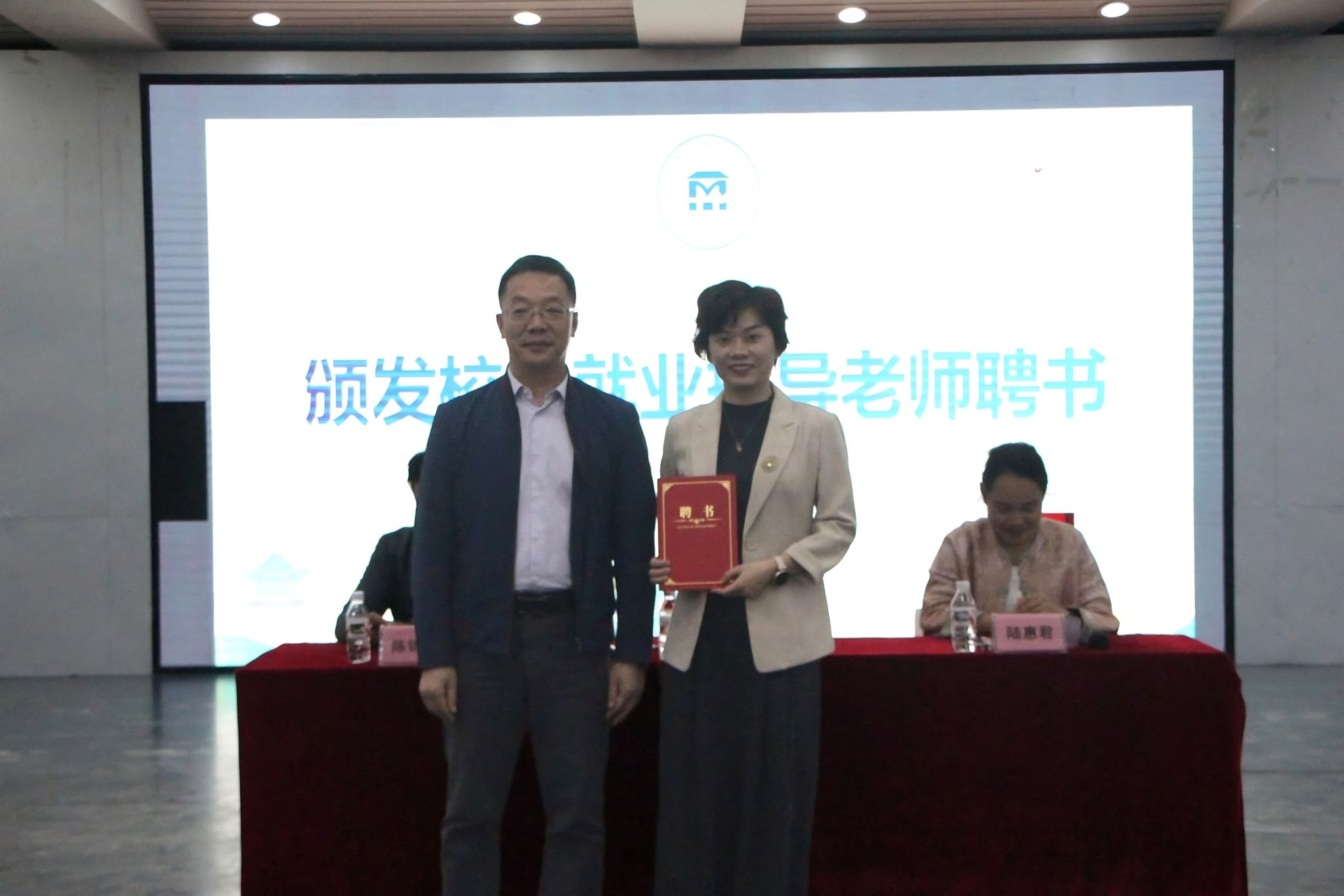 会上,公司为韦婕女士颁发“校外就业指导老师”聘书,请其为公司就业指导工作提供持续支持与专业指导。